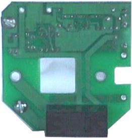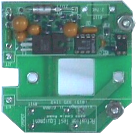 This is the timer circuit board that fits inside the 1950 pressure switch enclosure. The rectangular hole in the center fits over the raised portion in the center of the micro switch. The Timer circuit is located at the top, and a 10A 225VAC electromechanical relay is located on the back side at the bottom. The bottom view at right shows the 10A 250VAC relay. |