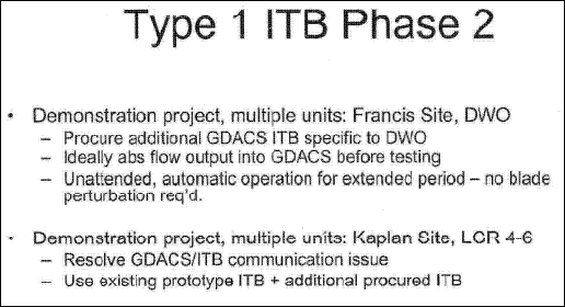 This third slide tells of upcoming plans to acquire additional ITBs for testing at Dworshak dam and provides detail about the planned testing.