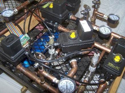 HDC engineers also asked Actuation Test Equipment Company design and built this pressure transducer cart to work with the ITB. They were offered USACE for $13,000 each. It has been said that instead of buying these ITB accessories from ATECo USACE reverse-engineered this design and hired a local contractor in Portland, Oregon to mass produce these pressure transducer carts for a much higher price.